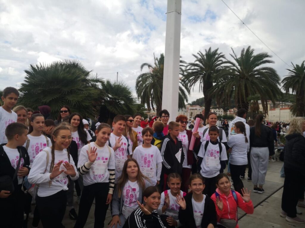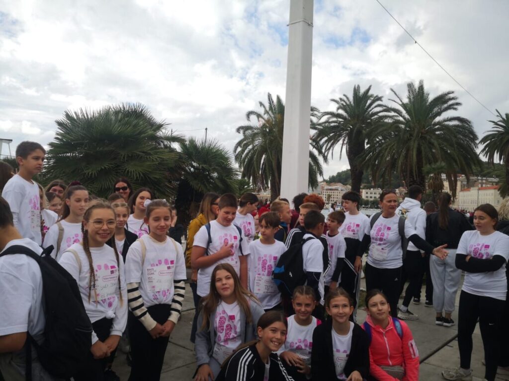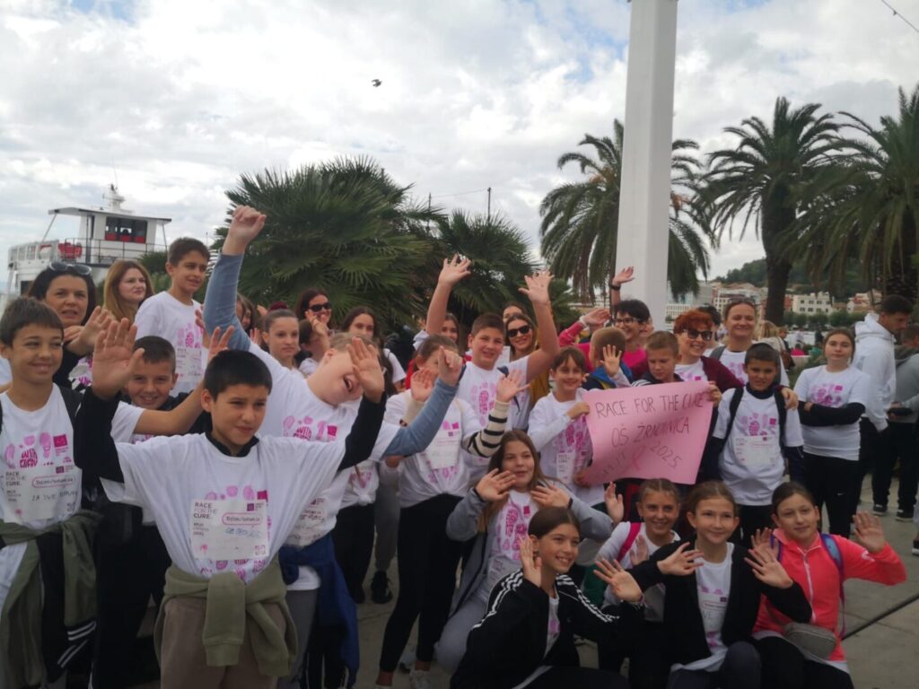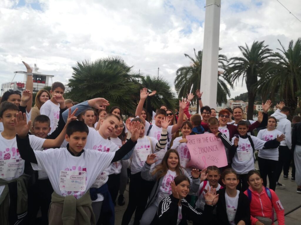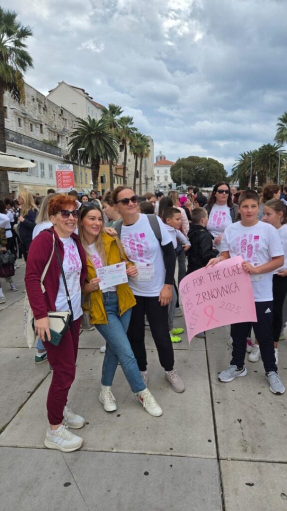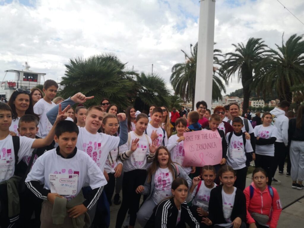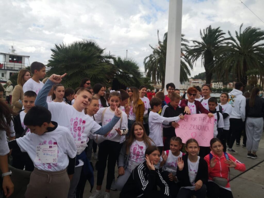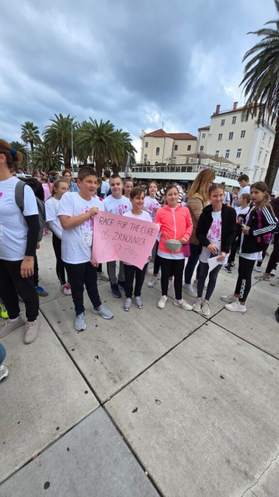 U nedjelju, 5. listopada, djeca naše škole — ponosni mladi Žrnovčani — sudjelovala su u humanitarnoj utrci Race for the Cure koja se održala na splitskoj Rivi. Ova međunarodna manifestacija, posvećena borbi protiv raka dojke, okupila je stotine sudionika svih uzrasta koji su svojim koracima i osmijesima pokazali podršku oboljelima i podigli svijest o važnosti ranog otkrivanja bolesti.