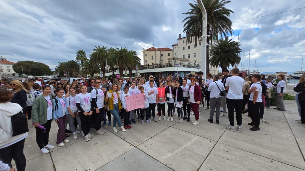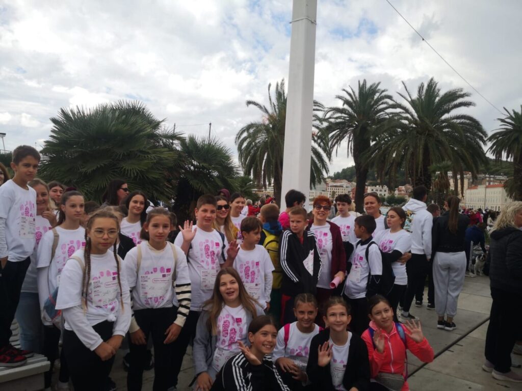 Naši učenici, zajedno s učiteljima i roditeljima, s puno su entuzijazma obukli prepoznatljive ružičaste majice i krenuli u laganu šetnju i trčanje kroz centar Splita. Unatoč jutarnjem povjetarcu i oblacima, atmosfera je bila vedra, ispunjena pozitivnom energijom i osjećajem zajedništva.